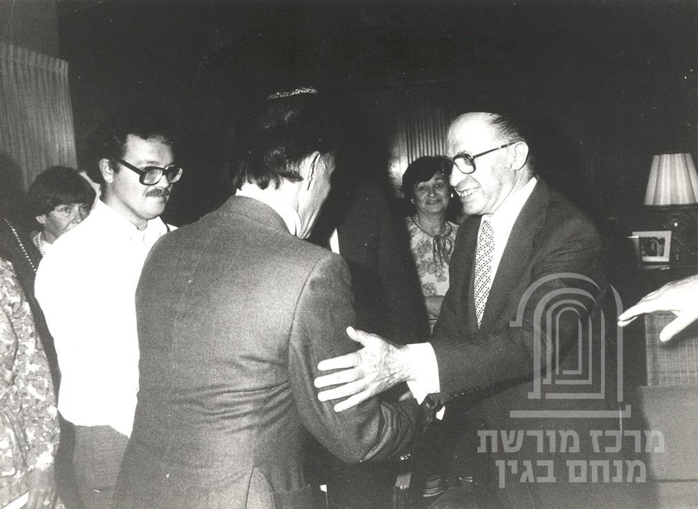 חתן פרס נובל לשלום (1978) ראש הממשלה. בגין היה מפקד ה אצל ולחם בבריטים לפני קום המדינה.